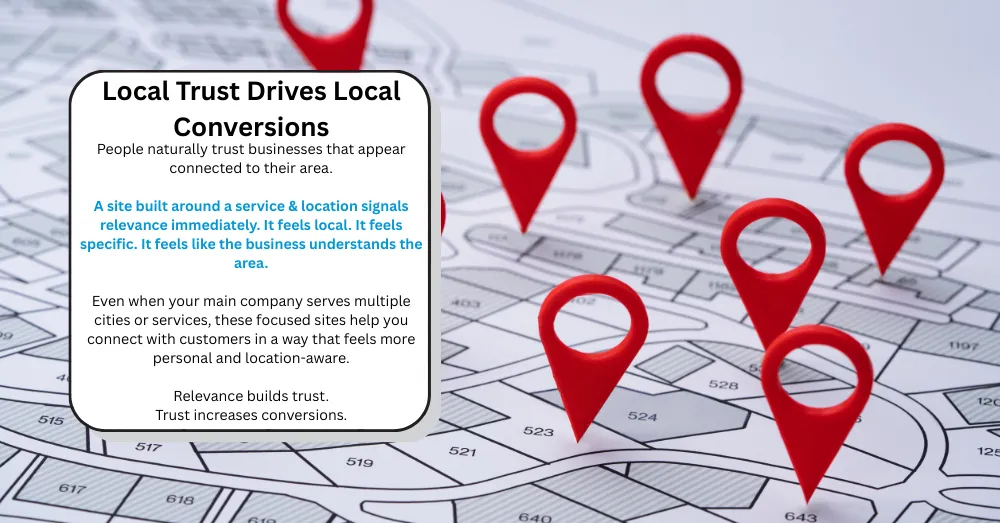 Local relevance built into page sections (not awkward keyword stuffing)